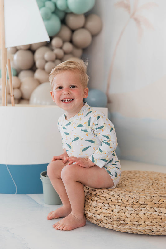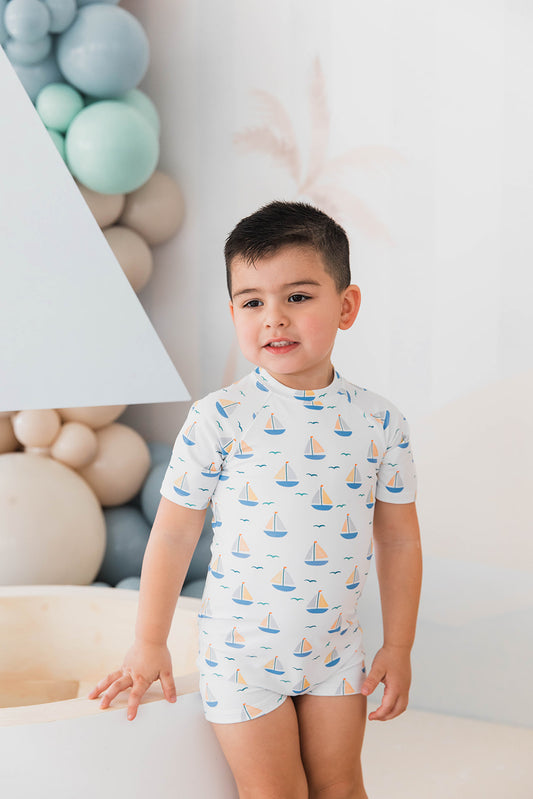With sun-washed colors, playful prints, and easy, comfortable fits, our new swimwear collection brings a touch of the Italian seaside to little summer adventures. Designed for beach days, poolside splashes, and endless sunshine, these styles are made for carefree moments and sweet summer memories.
