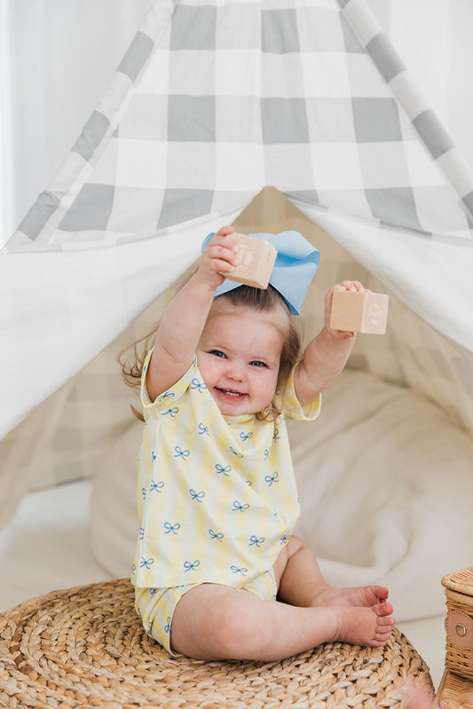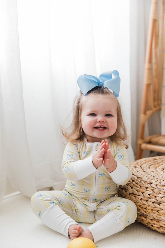 Zippered Romper in Lemoncello Check