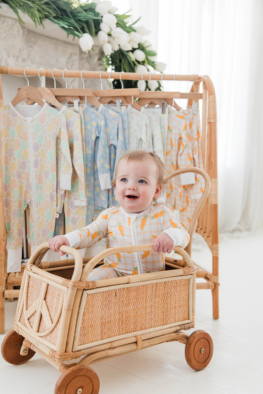 Zippered Romper in Pastel Egg Meadow