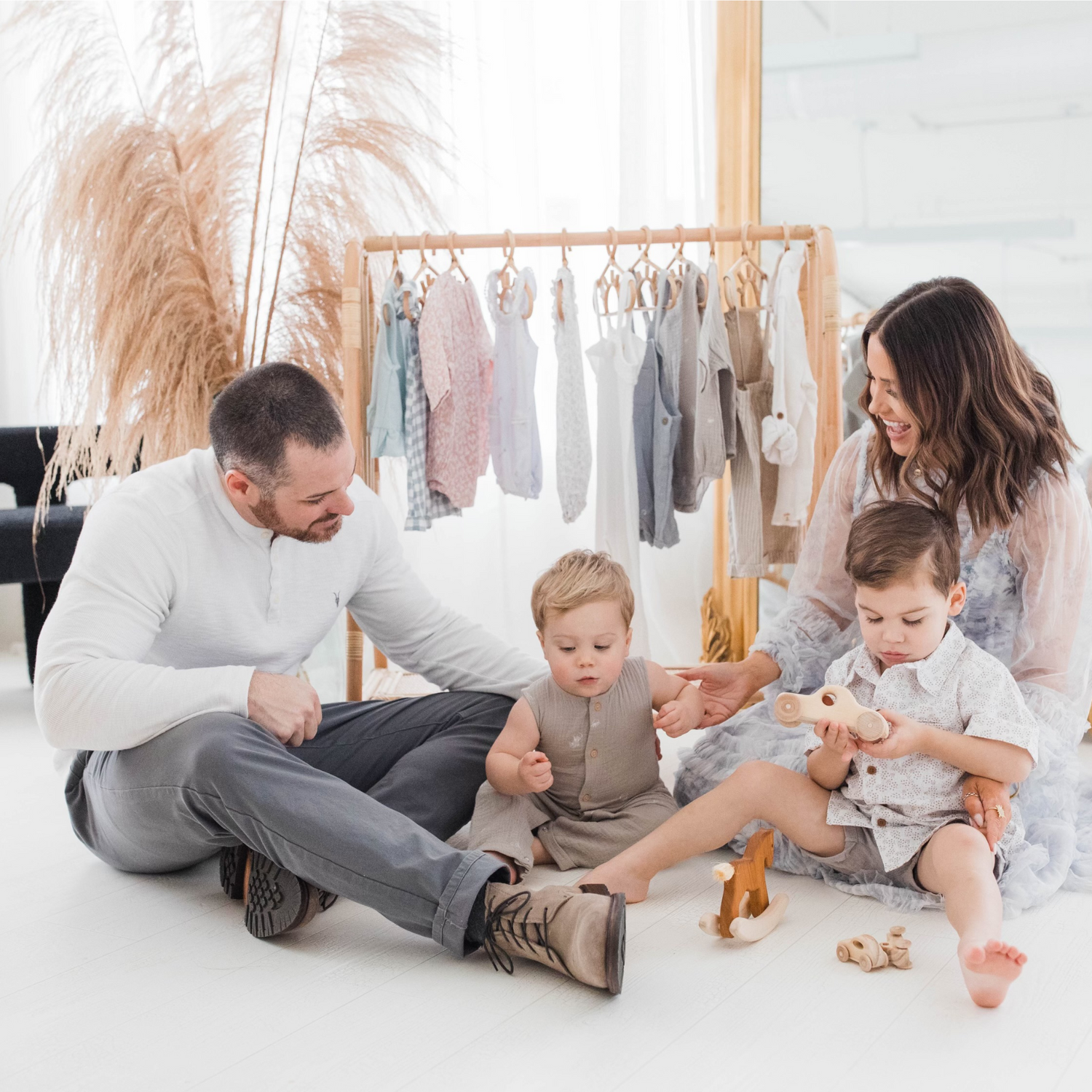 Hi! My name is Alexa Anglin and I am the founder of Ollie's Day! As a mother of two young boys, I always struggled finding retailers that I loved for them. I realized that many pieces for boys were a bit cheesy (think dinos, trucks, and bulldozers) and I constantly felt like I was struggling to find things we loved for them to wear. I have always gravitated towards more muted, soft colors and playful designs- I really wanted my children's clothing to reflect this style. PS- we LOVE dinos, trucks, and construction equipment, but maybe not on ALL our clothes haha!