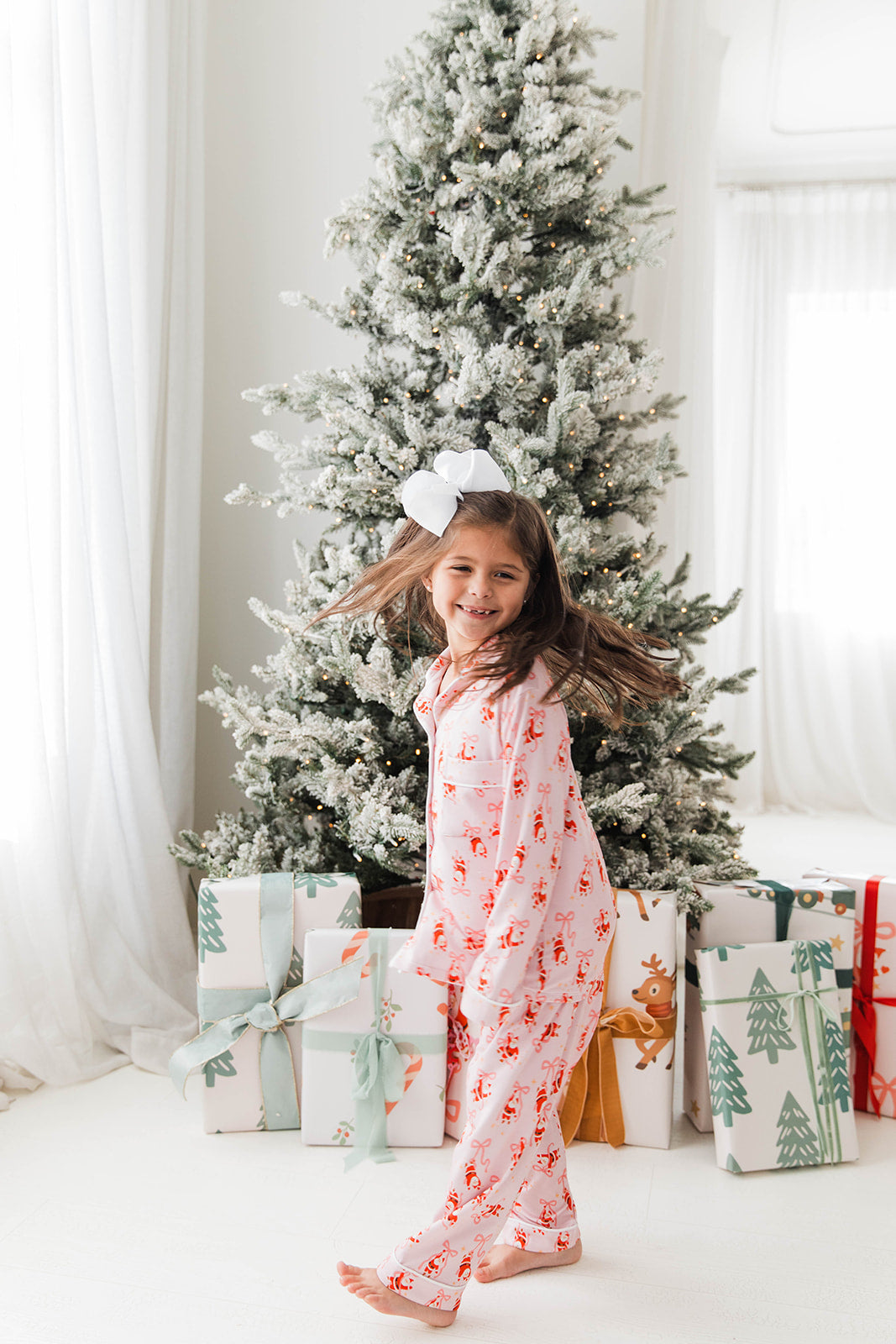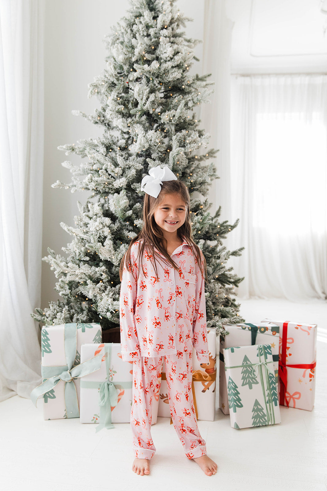 Make holiday mornings extra special with our Wrapped by Santa Button-Down Two-Piece Set! This charming set features a playful Santa and bow print with a classic button-down top and coordinating bottoms. Crafted from soft, breathable bamboo fabric, it ensures all-day comfort for Christmas morning, family photos, or cozy lounging at home. The two-piece design allows easy movement, and the button-down top adds a touch of festive style.