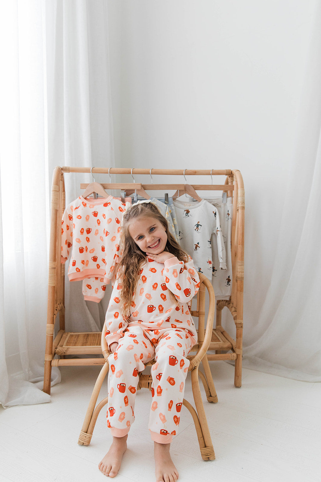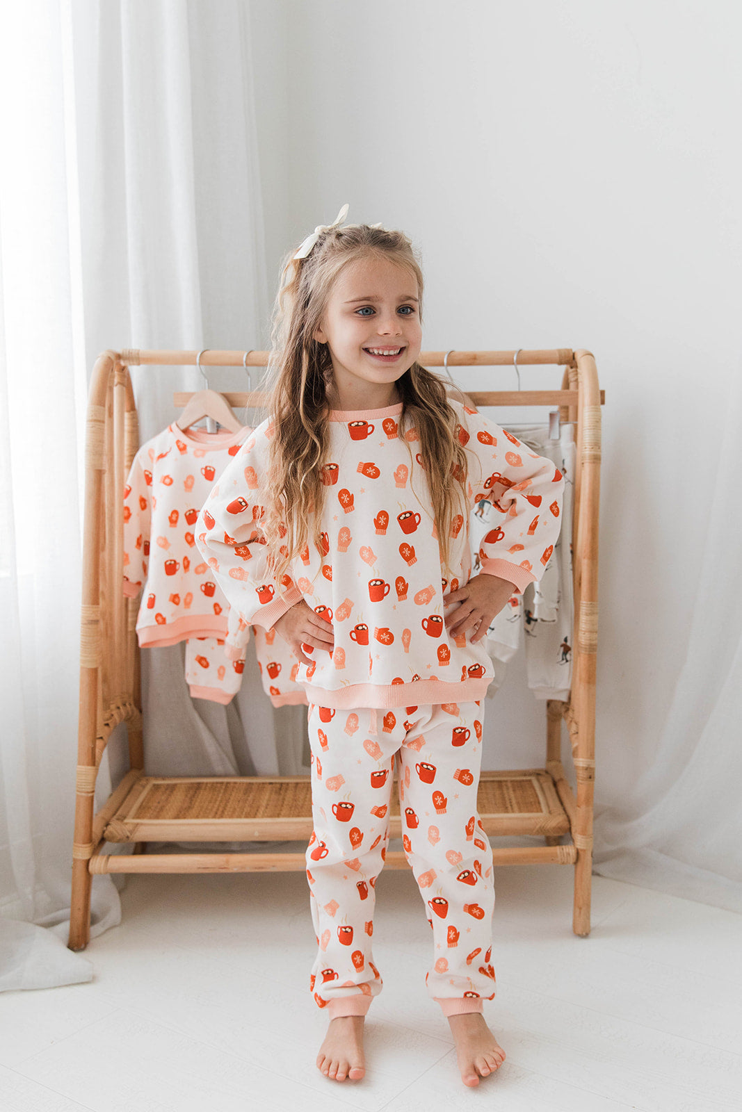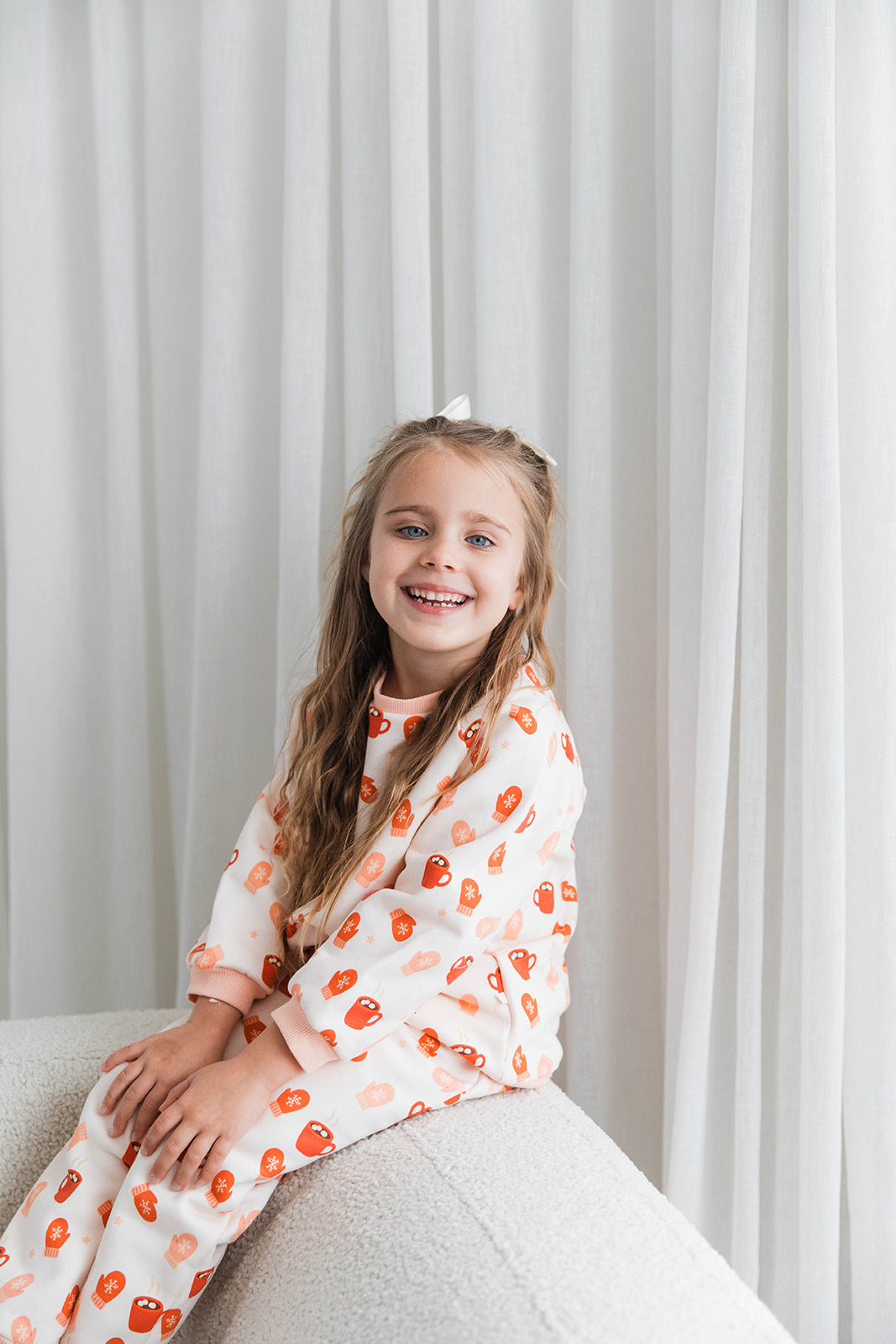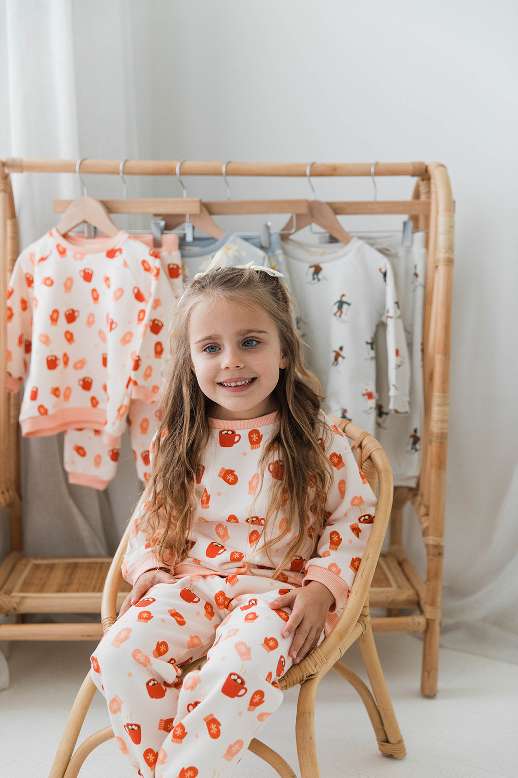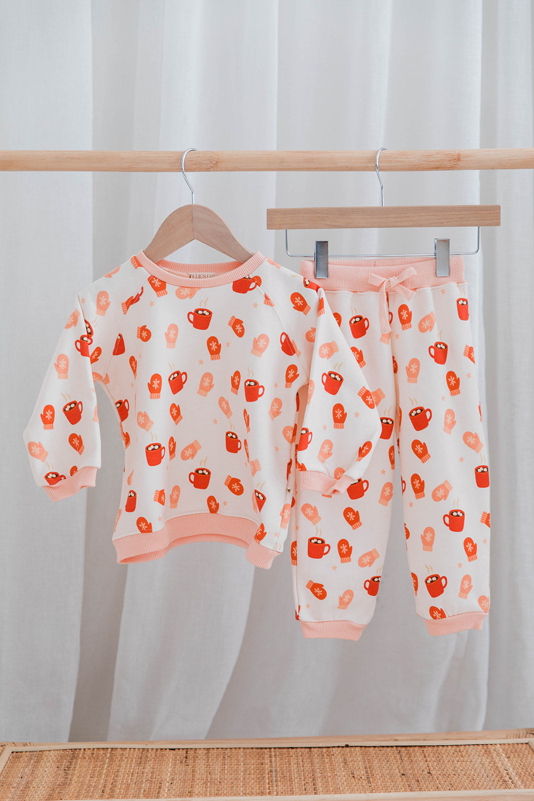 Celebrate the cozy side of winter with our Winter Sweat Set. This adorable two-piece outfit includes a soft sweatshirt and matching pants adorned with cheerful hot chocolate cups and winter glove illustrations. Crafted from breathable, durable bamboo fabric, it keeps your child comfortable during playtime, family outings, or relaxing indoors. The easy pull-on design ensures stress-free dressing for parents, while the whimsical winter-themed print adds a festive touch to your little one’s cold-weather wardrobe. Perfect for babies and toddlers who love the magic of winter!