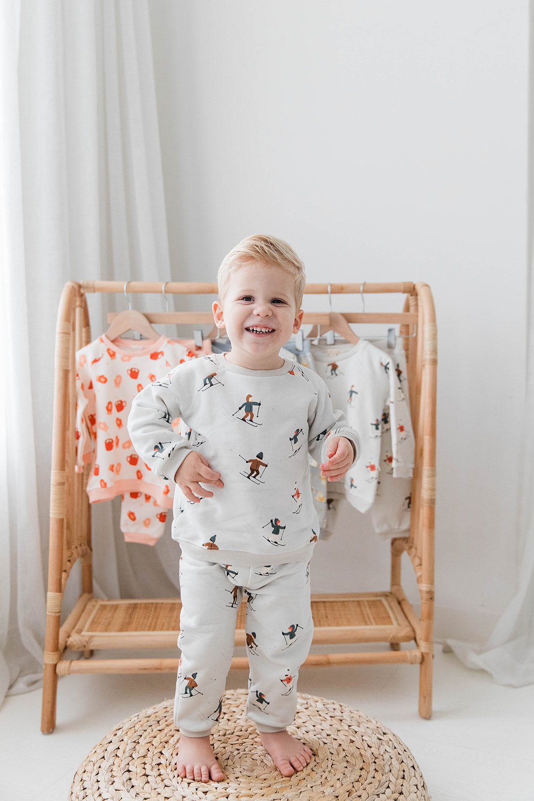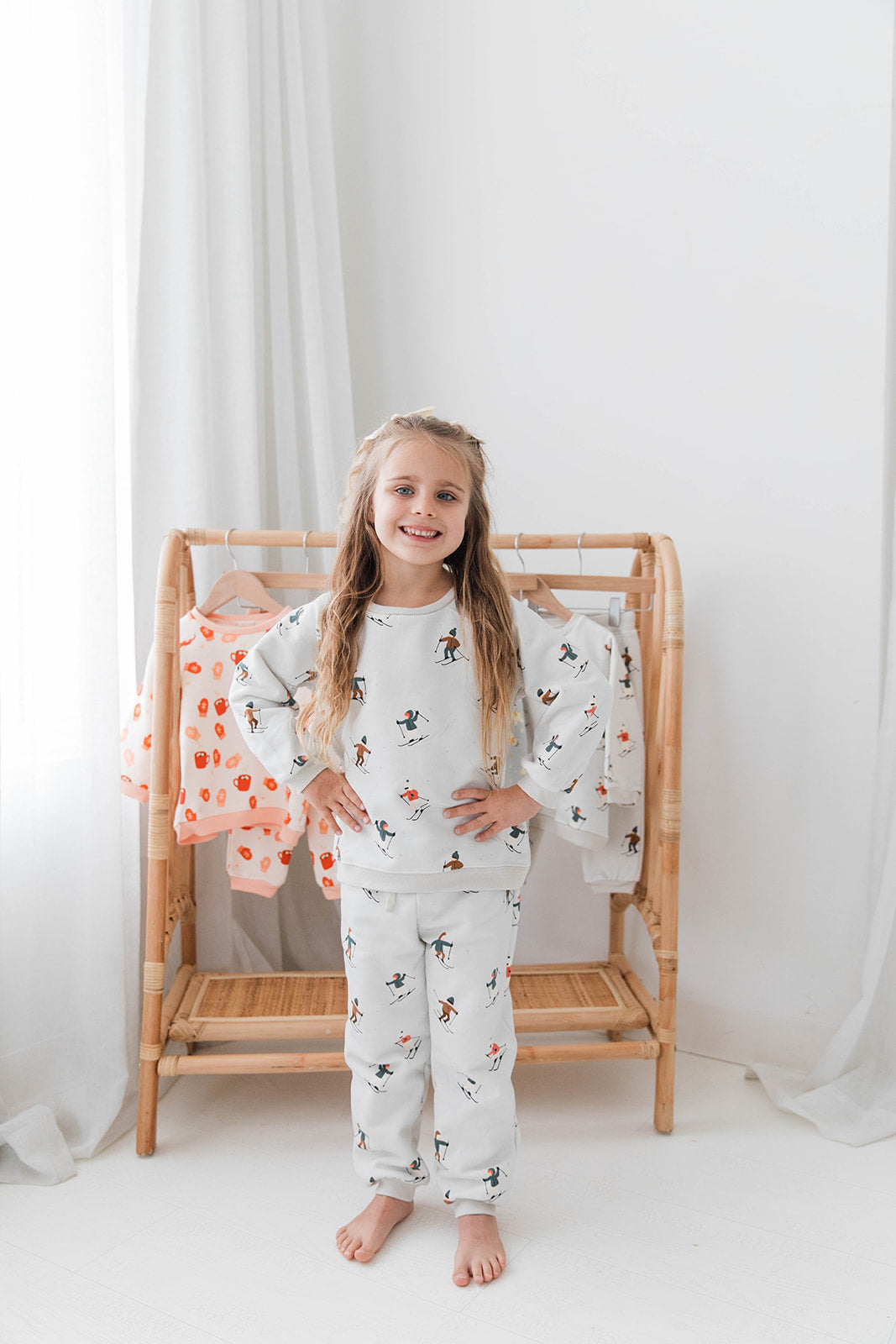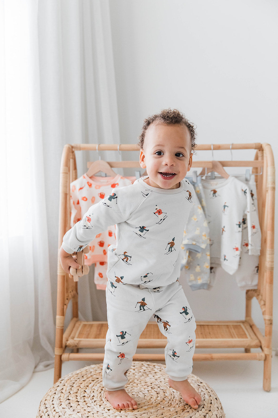 Bring winter fun to your child’s wardrobe with our Winter Ski Sweat Set. This adorable two-piece outfit includes a soft sweatshirt and matching pants adorned with cheerful skier illustrations. Crafted from breathable, durable fabric, it ensures all-day comfort for playdates, outdoor adventures, or cozy days indoors. The easy pull-on design makes dressing stress-free for parents, while the whimsical winter print adds festive charm to your little one’s cold-weather wardrobe. A must-have set for toddlers and babies who love winter fun!