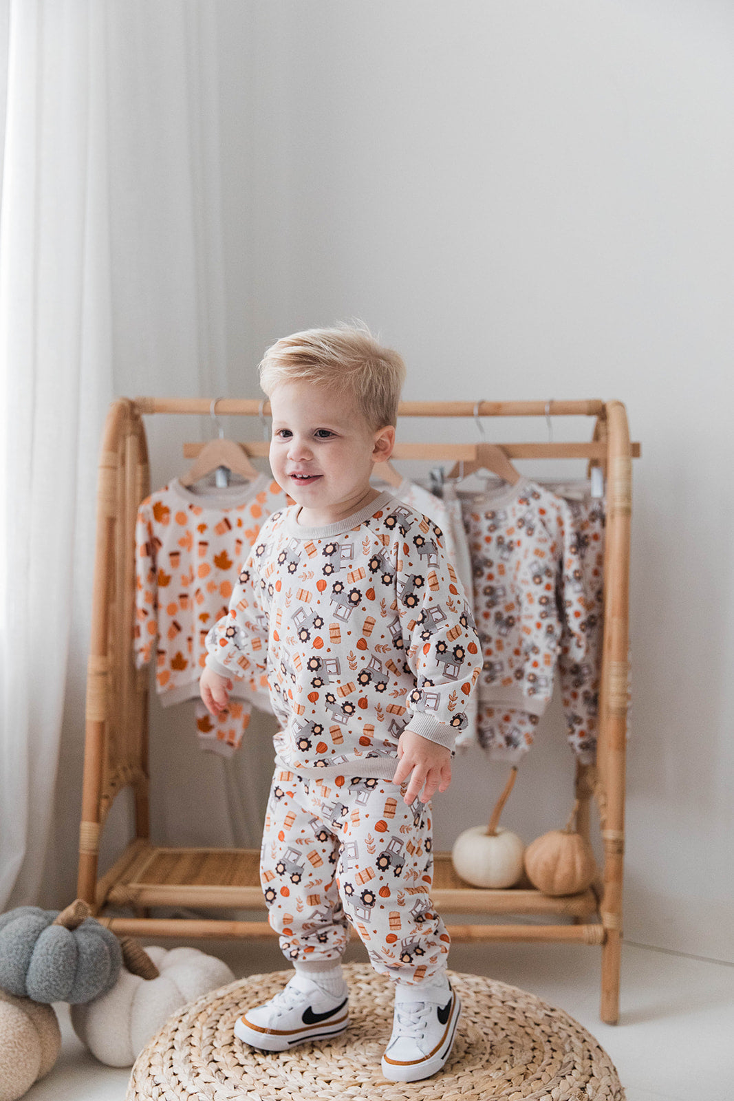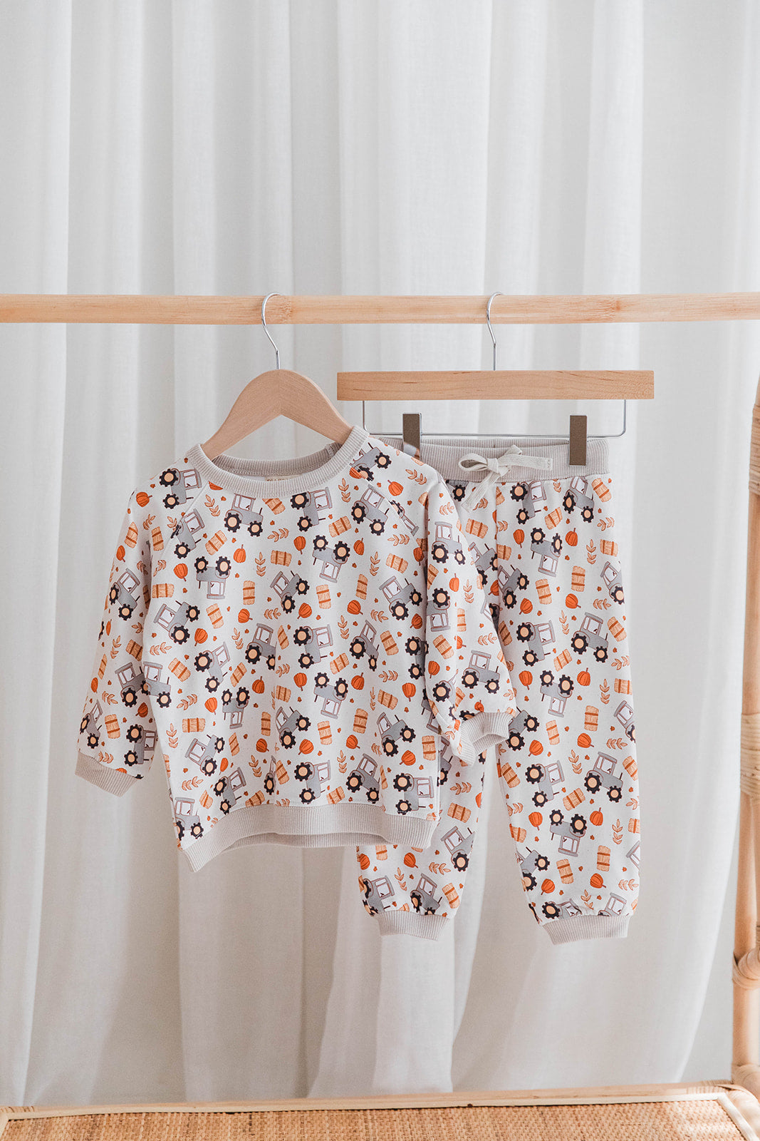 Keep your little one cozy and cute in this adorable tractor-themed sweat set! Designed with playful tractor graphics, this matching top and bottom set is perfect for everyday wear, playdates, or lounging at home. The soft, breathable fabric keeps kids comfortable all day long, while the easy pull-on fit makes dressing simple for busy parents. With its durable design and farm-inspired charm, this sweat set is sure to become a favorite in your little farmer’s wardrobe.
